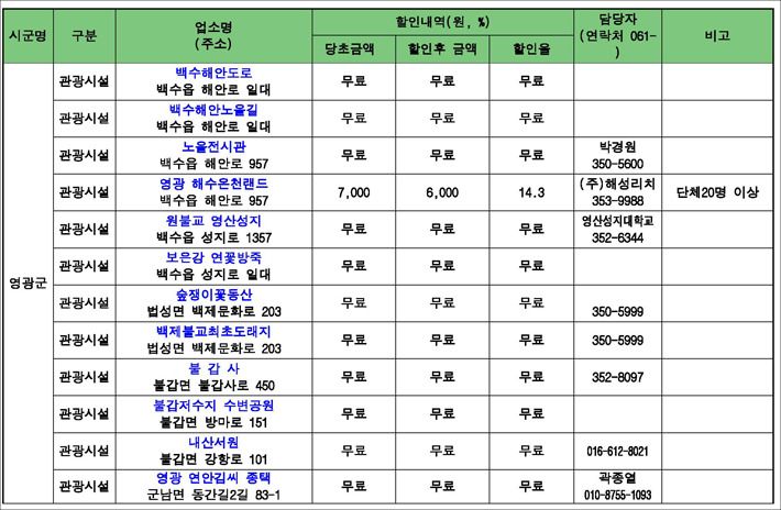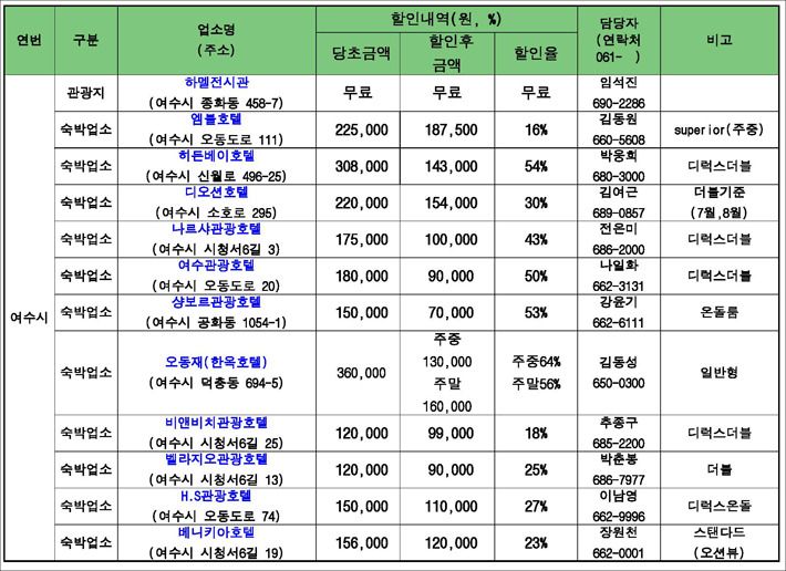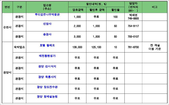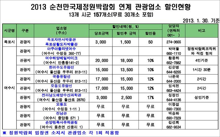 2013순천만국제정원박람회 개최에 따라 박람회 연계 관광업소 할인현황을 알아보았습니다.