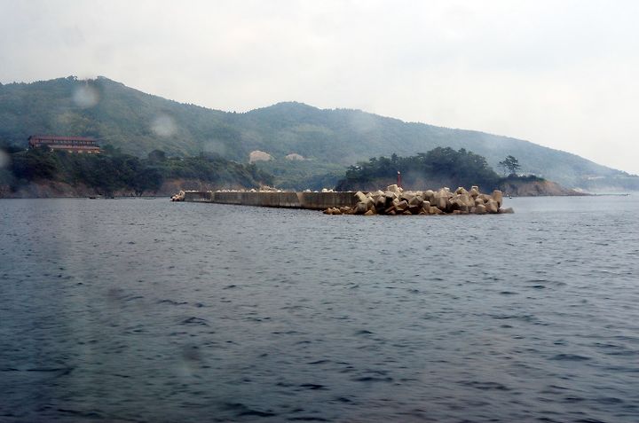섬 앞으로는 방파제도 보이고 큰 건물도 보입니다.