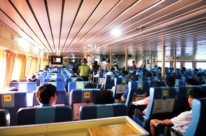 파도는 거의 없는 상태라 여객선은 크게 출렁이지 않았습니다.