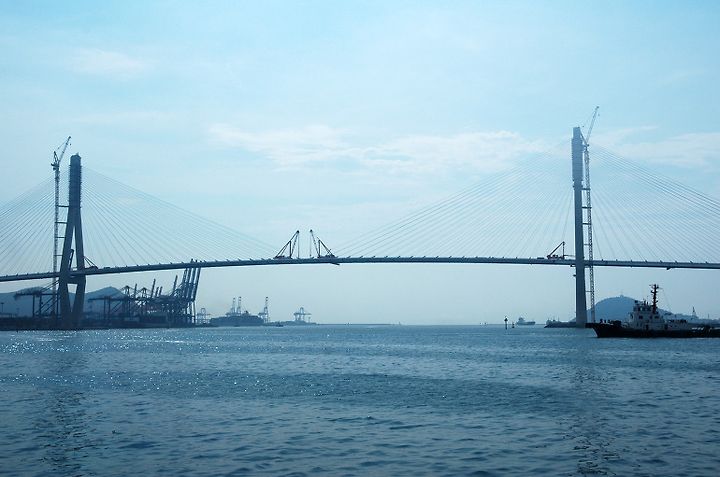 웅장한 다리 상판을 지나 망망대해로 여객선은 달려갑니다.