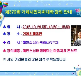 혜민스님 썸네일형 리스트형 [나의 부처님] 사랑과 존경, 혜민스님/오늘의 법문 [나의 부처님] 사랑과 존경, 혜민스님/오늘의 법문 보은 법주사 마애여래의좌상(보물 제216호). [나의 부처님] 사랑과 존경, 혜민스님/오늘의 법문 사랑과 존경/ 혜민스님 며칠 전 어렸을 때 참으로 친하게 지냈던 속가의 사촌 동생으로부터 결혼을 한다는 이메일을 받았다.방학 때마다 외할머니가 계신 외갓집에 모여 어깨동무하면서 재미있게 놀던 때가 바로 어제 같은데 벌써 결혼을 한단다. 지금은 미국에 있는데다 또 출가한 몸이라 직접 결혼식장에 가서 축하는 못 해 주지만 멀리에서나마 그 동생을 위해 그리고 올 봄에 결혼하는 많은 젊은 부부들을 위해 도움이 되는 말이라도 한마디 해주고 싶다. 결혼하는 부부들에게 사람들이 해주는 말들은 대체로 사랑이라는 명제에 포커스가 맞추어져 있다.머리가 파뿌리가 되도록 사랑하.. 더보기 [거제도여행] 혜민스님과 함께하는 마음치유 콘서트/거제여행/거제여행코스/거제도여행코스/거제가볼만한곳/거제도가볼만한곳/시민자치대학 [거제도여행] 혜민스님과 함께하는 마음치유 콘서트 /거제여행/거제여행코스/거제도여행코스/거제가볼만한곳/거제도가볼만한곳/시민자치대학 [거제도여행] 혜민스님과 함께하는 마음치유 콘서트 /거제여행/거제여행코스/거제도여행코스/거제가볼만한곳/거제도가볼만한곳/시민자치대학 혜민스님. 아마도 많은 사람들이 혜민스님을 알고 있으리라는 생각입니다. 또한 혜민스님의 법문이나 특강을 들은 분도 많으리라 생각합니다. 이처럼 이름이 널리 알려져 있는 혜민스님이 거제도를 찾는다고 합니다. 오는 10월 29일(목) 오후 거제시에서 실시하는 거제시민자치대학에 특별강사로 초청돼 오신다고 합니다. 강의는 '혜민스님과 함께하는 마음치유 콘서트'라는 주제로 열립니다. 이번 강의는 많은 사람들이 몰려들 것으로 예상하여 평소 강의하던 청소년수련.. 더보기 이전 1 다음