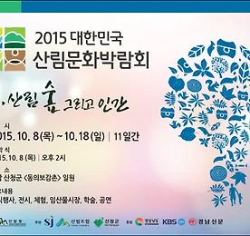 [산청여행] 산, 산림 숲 그리고 인간, 2015 대한민국 산림문화박람회 /산청여행코스/산청 가볼만한 곳/9월여행지추천/가을 여행지 추천/가을축제 [산청여행] 산, 산림 숲 그리고 인간, 2015 대한민국 산림문화박람회 /산청여행코스/산청 가볼만한 곳/9월여행지추천/가을 여행지 추천/가을축제 산, 산림 숲 그리고 인간. 2015 대한민국 산림문화박람회가 오는 10월 8일(목)부터 18일(일)까지 11일간, 경남 산청군 일원에서 열립니다. 주요행사로는 공식행사, 전시, 체험, 임산물시장, 학술 그리고 공연 등이 펼쳐집니다. 경남 산청군은 2013 산청세계전통의약엑스포를 개최하였습니다. 지난 2013년 9월 6일부터 10월 20일까지 45일간 개최한 산청엑스포는 30여개국 170만 명이 참가하였다고 합니다...